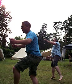 Zurück in unserem Zeltdorf hält es Kai und Rainer nicht auf den Stühlen...