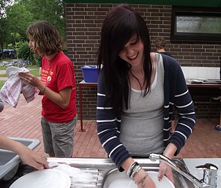 ... dazu gehört das Reinigen des Essenzelts und natürlich der Abwasch